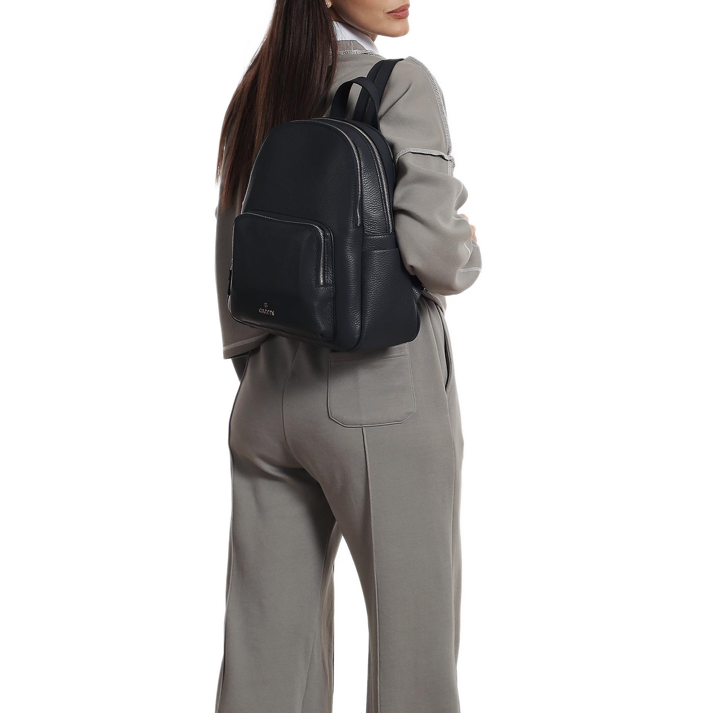 Чёрный кожаный рюкзак